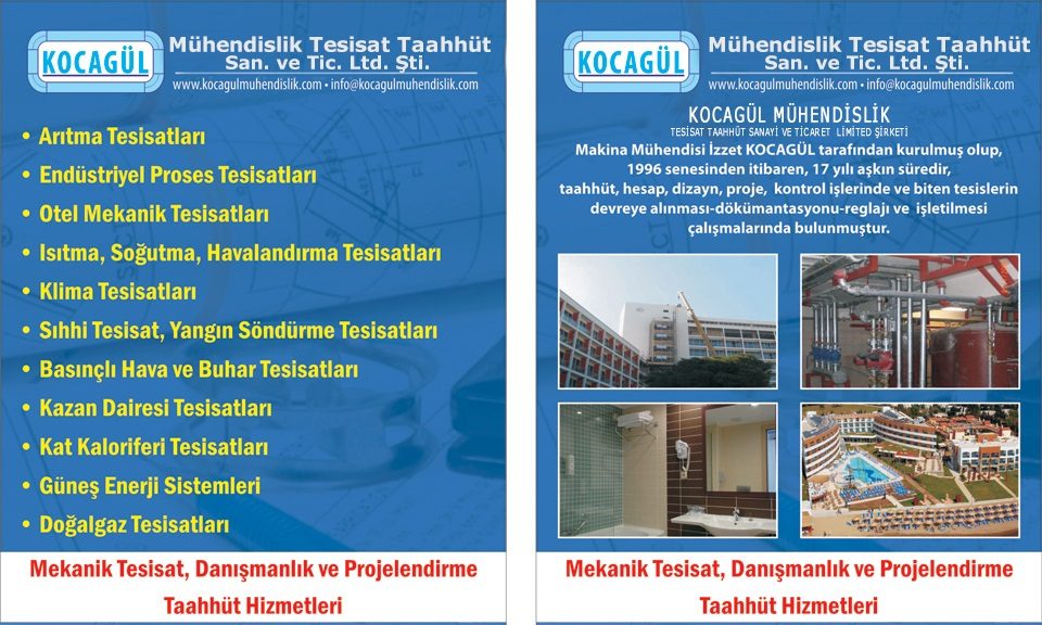 Mekanik Tesisat uygulama&koordinasyon mühendisliği, proje&dizayn mühendisliği ,işletme-bakım mühendisliği yapmak için ve özellikle arıtma tesislerinin, endüstri tesislerinin, otellerin, hastanelerin, AVM’ lerin ,Kazan Dairesi mekanik hacimlerinin baştan sona hesap-dizayn-proje-montaj ve mekanik tesisatlarının kurulumu ve işletmeye alınması konusunda detaylı çalışmalarda bulunmak,işletme personeli eğitim ve oryantasyonunu sağlayarak anahtar teslimi kaliteli-güvenli ve konforlu mekanik tesisat işlerinizi yapmak ve tecrübelerimizi sizlere aktarmak üzere kurulduk.
