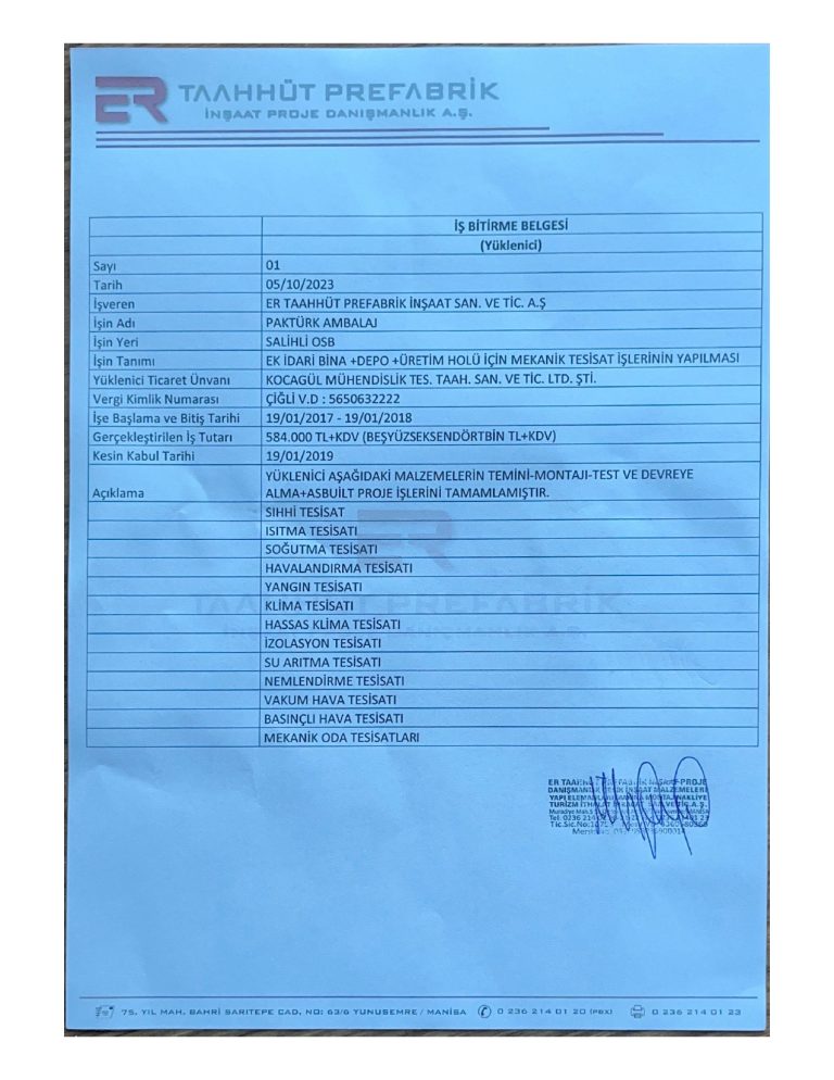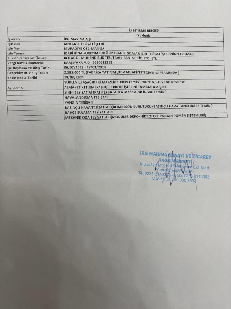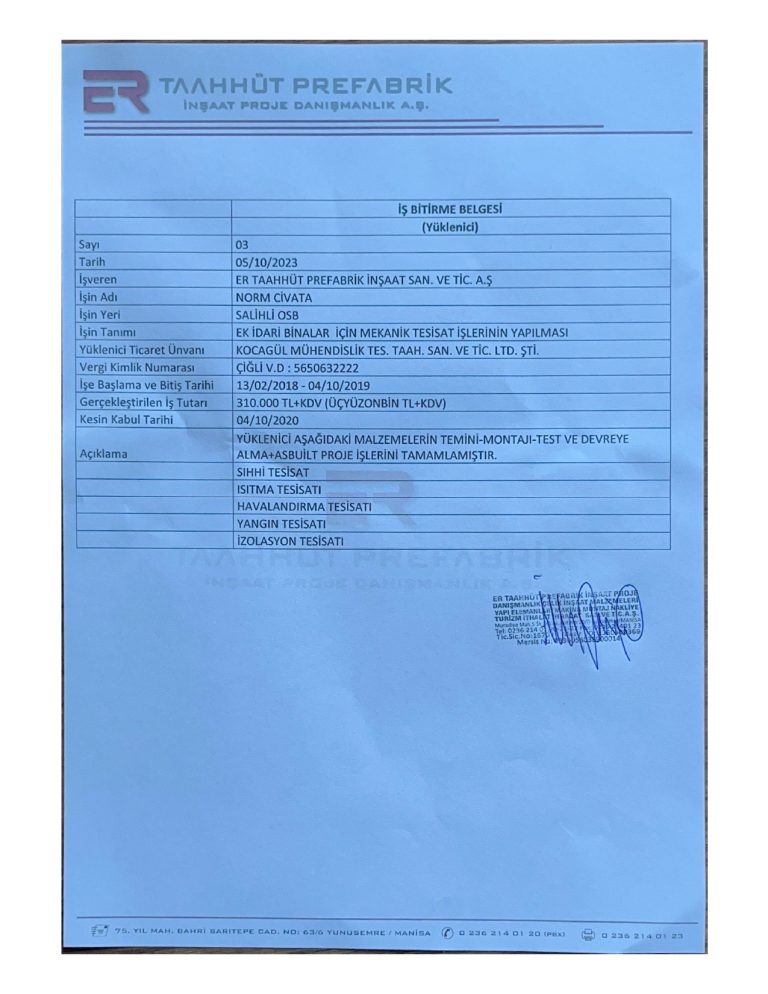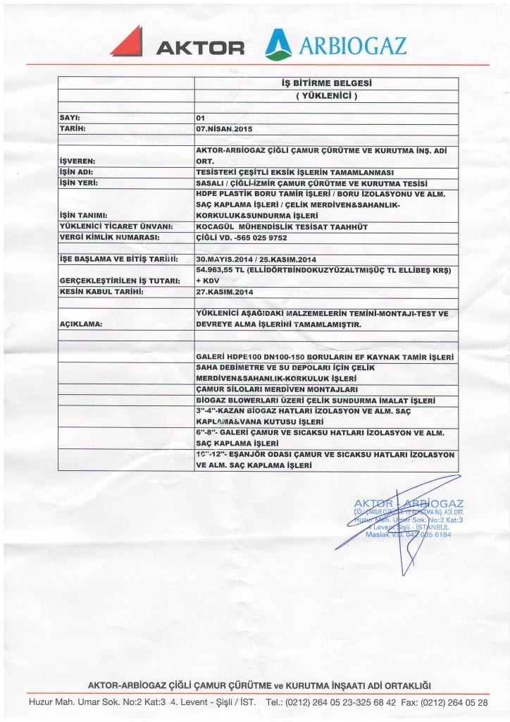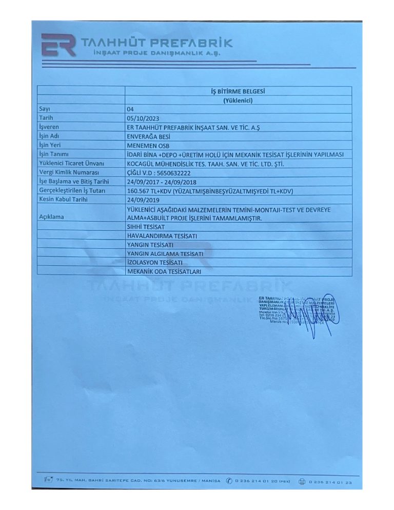 İş Bitirme Belgeleri