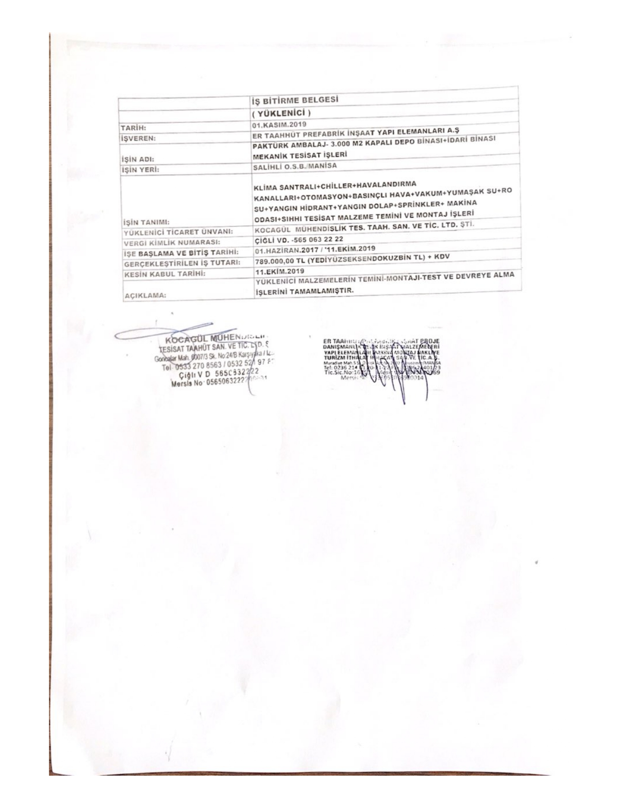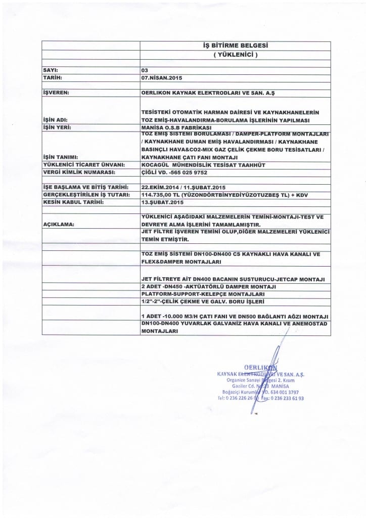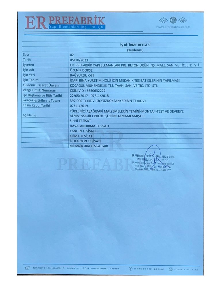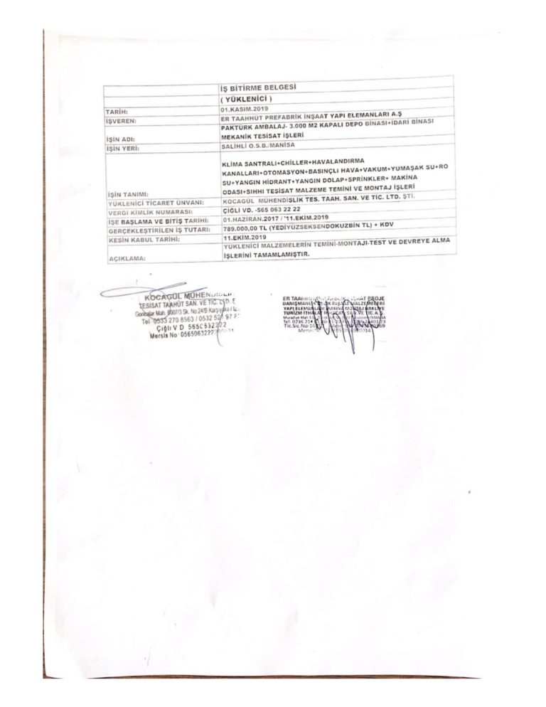 İş Bitirme Belgeleri